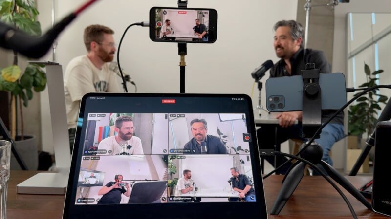 We were able to have an individual camera angle for all three of us as well as a wide view of the room from four iPhones, all sent into a single iPad running Final Cut Pro for iPad 2. Having so many options for angles will be ideal for anyone making podcasts, music videos and similar recordings, YouTube content, or interviews. Once all the settings were dialed in, one touch of the record button was all it took to get things rolling.