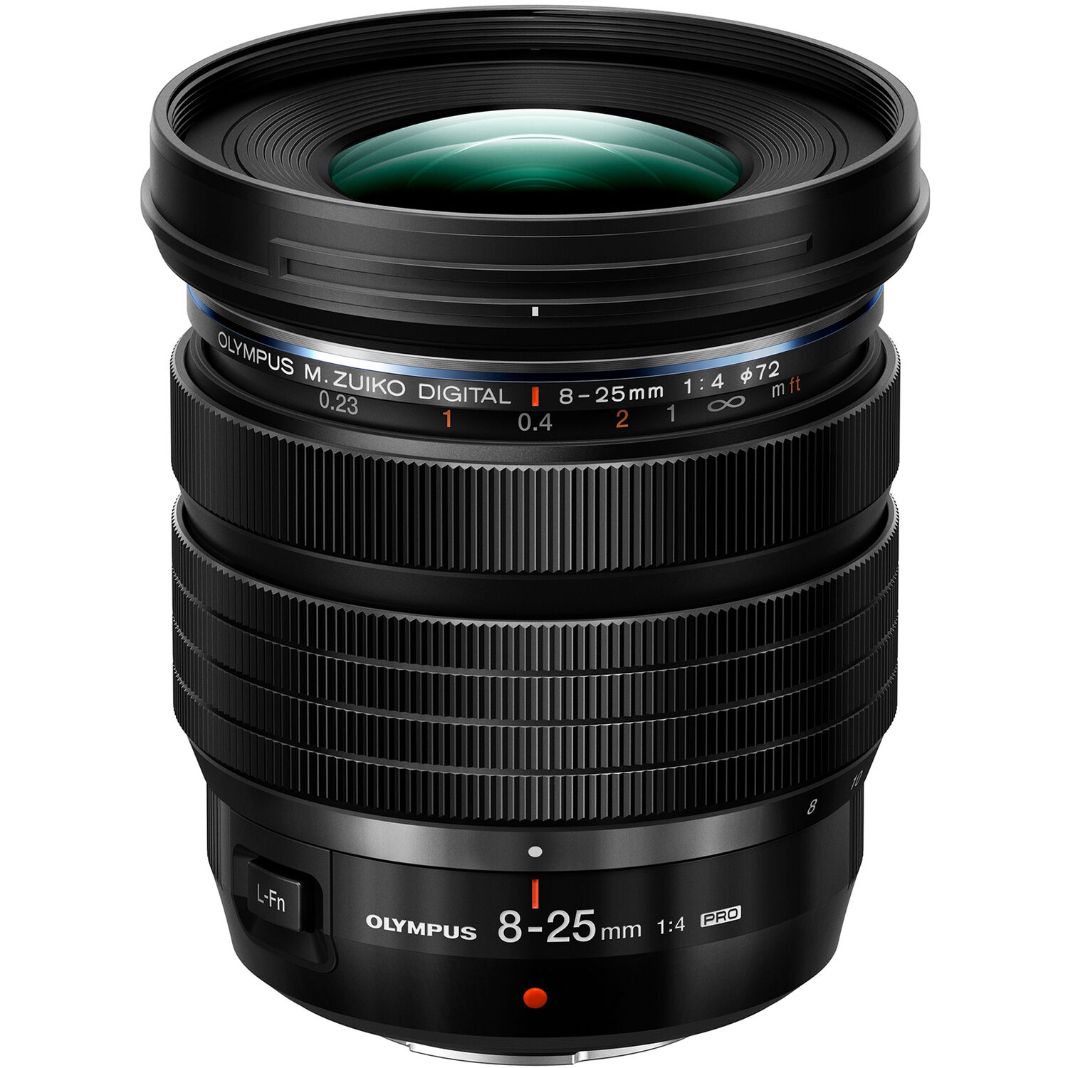 Like other Olympus and OM System Pro lenses, the 8-25mm features a manual focus clutch, allowing the focus ring to be pulled back to give the user a linear manual focus experience with hard stops at each end. There’s also a programmable L-Fn button, which can be customized to access several different settings.