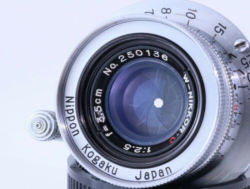 And part of that collection is a W-Nikkor-C 3.5cm (35mm) f/3.5 LTM (Leica Thread Mount) lens. I’ve listed it alongside its faster sibling, the f/2.5 version, simply because there is very little difference other than that speed. Well, except the price — the W-Nikkor-C f/2.5 is about twice the price of the f/3.5.