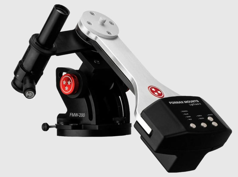 The Fornax LighTrack II is the last tracker on this list and also the most capable. But, it is the least portable of the bunch to the point where you would not want to hike with it. It is also the most expensive on this list. The optional alt-az wedge and counterweight kit nearly double the price as well. There is no internal power option, so it must be powered by an external 12V power supply (not even a USB external phone charger will work), and it has a tracking limit of 107 minutes before it needs to be reset.