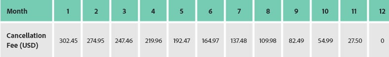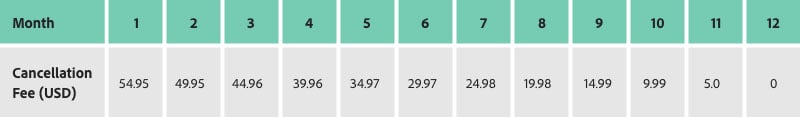 Here is a chart that breaks down roughly how much you would need to pay in early termination fees depending on which month of the year you cancel: