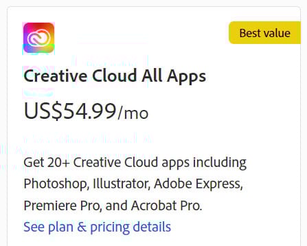 Adobe’s All Apps plan, provides access to over 20 apps in the Adobe Creative Cloud Collection, from Photoshop to Lightroom, from Premiere to After Effects.
