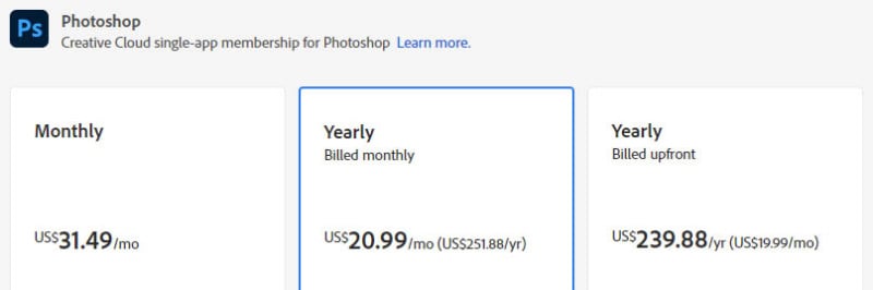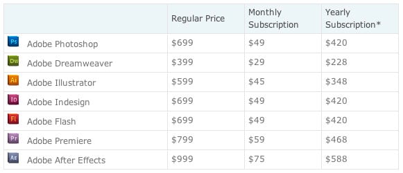 But pricing is a little more complicated than that single monthly rate advertised by Adobe — it only applies if you choose to subscribe for a whole year with monthly billing.