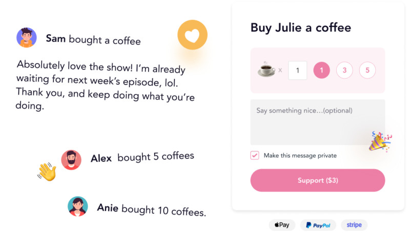 Users can create a free profile, link it to several payment methods — such as credit cards, Paypal, Apple Pay, and Google Pay — and receive instant payouts from any donations. Fans of the creator don’t need to create an account either to support the photographer either. As quite a new alternative for fan sites, Buy Me a Coffee gets regular updates from customer feedback and works on improving the experience.