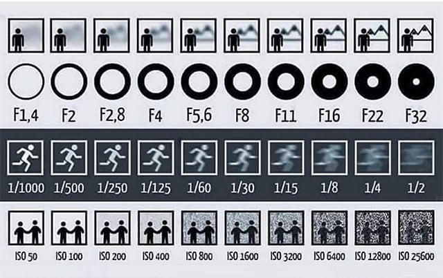 - Doubling ISO (e.g. from 400 to 800) increases exposure by 1 stop.