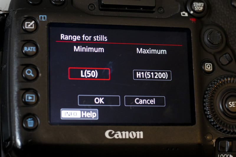 Many DSLR cameras will advertise that they can extend their ISO ranges below their minimum and above their maximum ISOs. In most cameras, it might be advertised that the extended range of the camera goes down to ISO 50 instead of 100 and up to ISO 51,200 instead of 32,000.