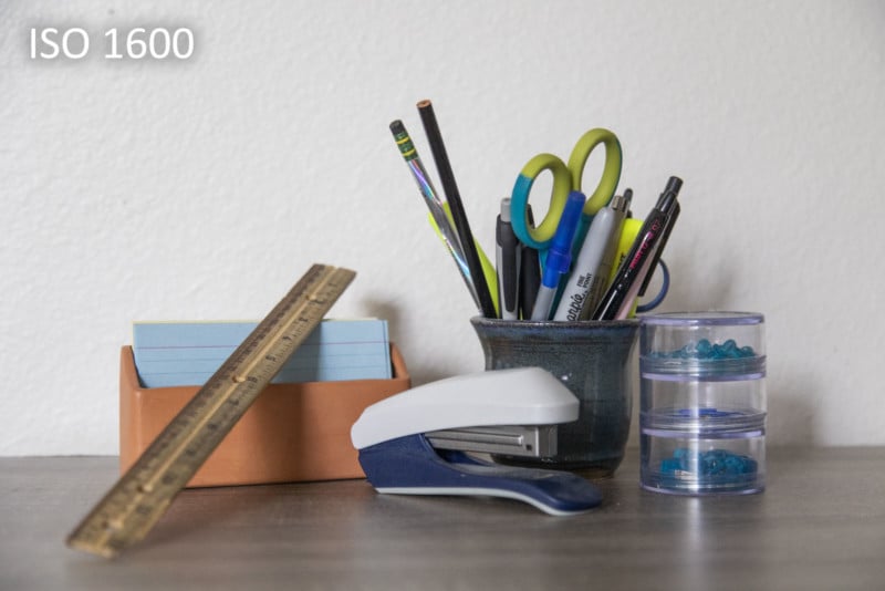 Below is a series of photos showing the same scene captured with different ISO speeds. Note that each required a different exposure time to keep the equivalent exposure value the same.