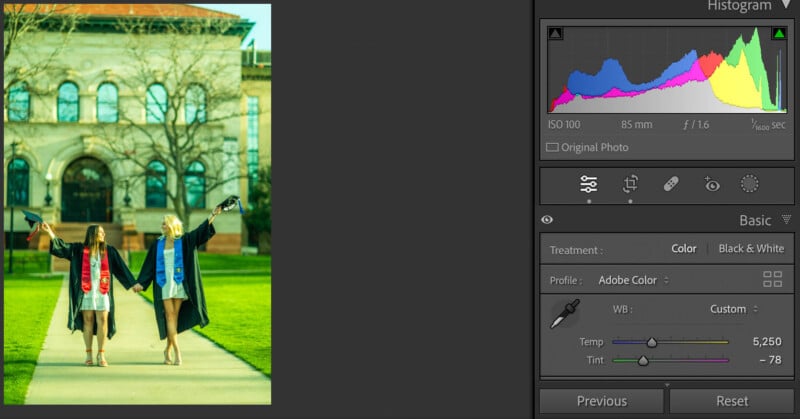 Essentially, you can use a dropper to set a target neutral, which is whatever color you want to appear as white. The accuracy of this tool isn’t always perfect, but it can let you very selectively determine what parts of your image you’d like to actually appear white.