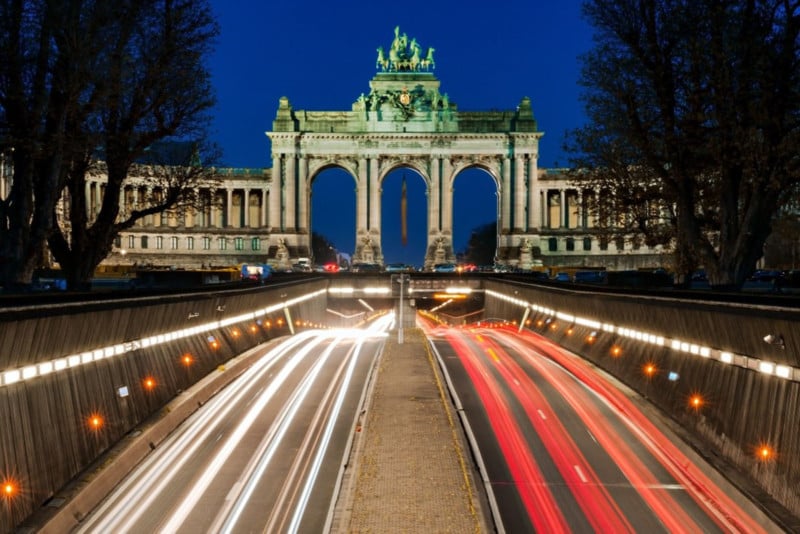 This shot taken in Brussels combines several of the ideas we covered in this section: centered composition, symmetry, rule of thirds, leading lines, rule of odds, frame within a frame, and color theory.
