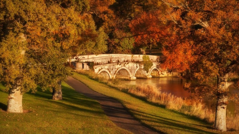 Natural features such as trees can also be used to frame a scene. In this case, the Autumn trees frame the stone bridge. In this case, I also used a centered composition with the bridge in the middle of the frame. Note that the frame doesn’t necessarily have to completely surround your subject. It could be trees on either side, as is the case here.