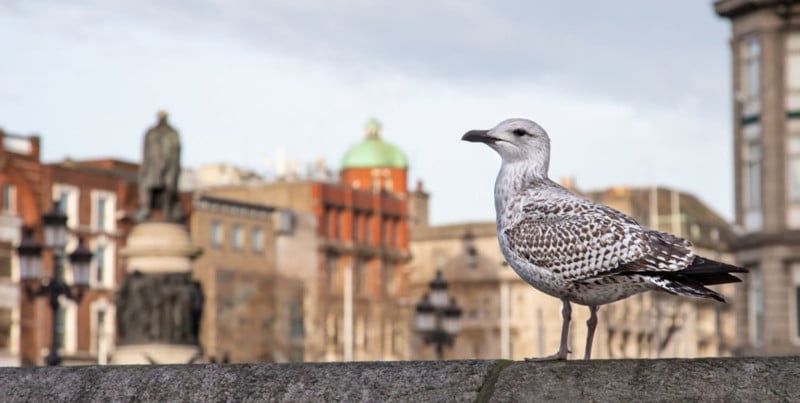 This photograph doesn’t contain any old seagull. This is a Dublin seagull! The slightly blurred O’Connell Street in the background gives the subject some context. The fact that he was eating a bowl of coddle and drinking Lyons Tea when I spotted him also lets me know that he was indeed a Dublin seagull. Notice, how the background is still blurred but not so much that the seagull doesn’t stand out. It’s about getting a balance between not distracting from the subject and providing background context.
