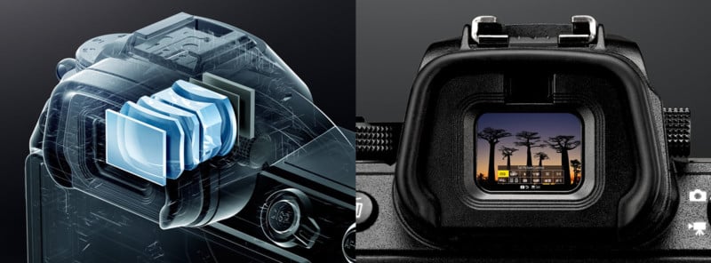 Electronic viewfinder (EVF). There are lots of advantages of using an EVF. Just like live view, the EVF allows the photographer to see the image as it will be captured. The EVF can also act as a small screen to perform image playback. Since it is a screen, it can also be overlaid with lines or other information that can’t necessarily be shown using an optical viewfinder.