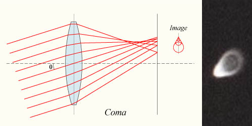 Coma, or comatic aberration, is when points of light at the edges of an image are stretched into comet-like shapes.