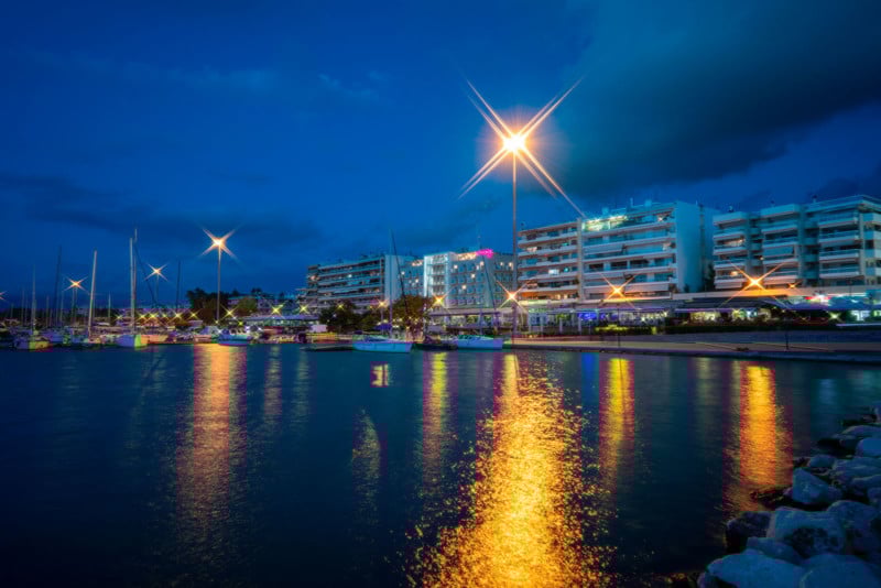 Sunstar effect can be achieved with almost any lens if the selected aperture is very small — f/16 or f/22, for example — but there are occasions in which either the lens is not performing ideally in this category, or the photographer wants to use a wider aperture (f/2, f/4, etc). Star filters produce stars around point light sources with any aperture, and they usually come in two forms: a) with a produced 4-peak star and b) with a produced 6-peak star.