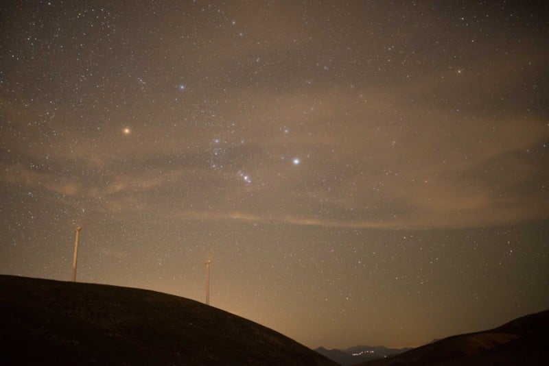 By using a light pollution filter, the effect of light pollution, which can be usually seen near the horizon as a yellow/orange tint, is reduced or even eliminated in the captured shots.