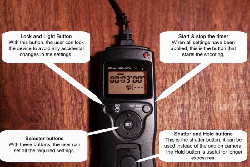 Note: Some of the basic settings of the external intervalometer might be written slightly differently between manufacturers and models, but in the end, they do exactly the same thing. Just make sure to identify each setting before shooting.