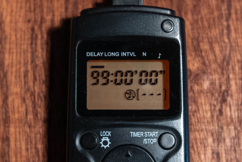 Note: In case you are just shooting a single long exposure, or you are shooting for a timelapse sequence with a shutter time longer than the maximum 30 seconds, there is another option in the intervalometer that must be set. In most intervalometers, this is noted as LONG and in this setting the user can set the length of the exposure.