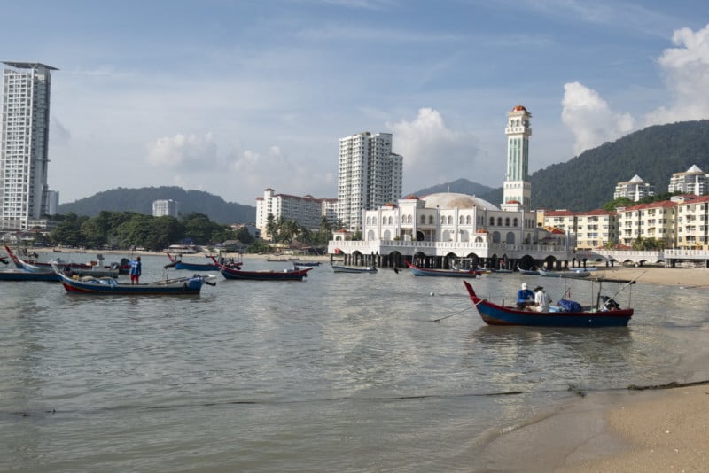 To test parallax I went out to my friendly neighborhood fishing village and made a series of photos of the Floating Mosque (it really isn’t floating, it rests on pillars over the sea). I stood in one location and shot a series of photos of the mosque focusing on the same spot in each photo.