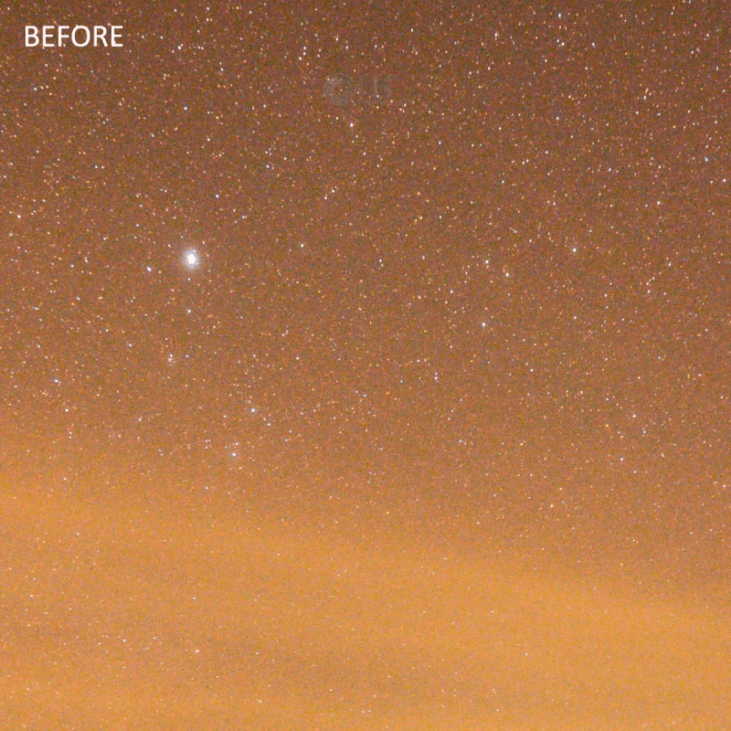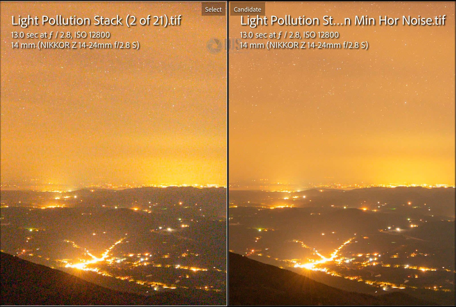 The stacked nightscape: Now I would introduce software light StarryLandscapeStacker or Sequator. First, I would use LR for a bit of pre-processing. Then, I would stack. Then I would bring either back into LR to finish it up or Photoshop for deeper processing.