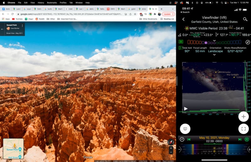 - Planit Pro. This is the ultimate planning app. You can plan out your compositions right down to the focal length. It also has moon phases, a light pollution map, and a landscape simulator built in. The app can be a little complicated and requires some tinkering to use. The app is also paid, but well worth it.