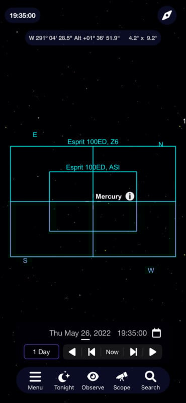 Tip: When you are out in starland, be sure to let your eyes adjust for 15 minutes, and follow the steps using red safe light to keep your eyes dark adapted.