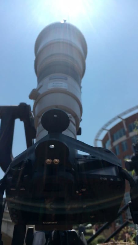 - Point the camera at the sun. DO NOT look through the viewfinder if using a typical DSLR and the filter is not naked eye safe. I recommend using live view either way.