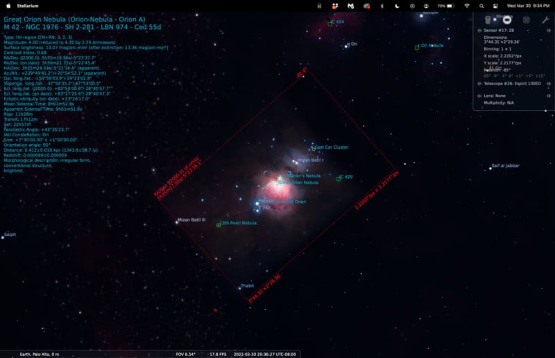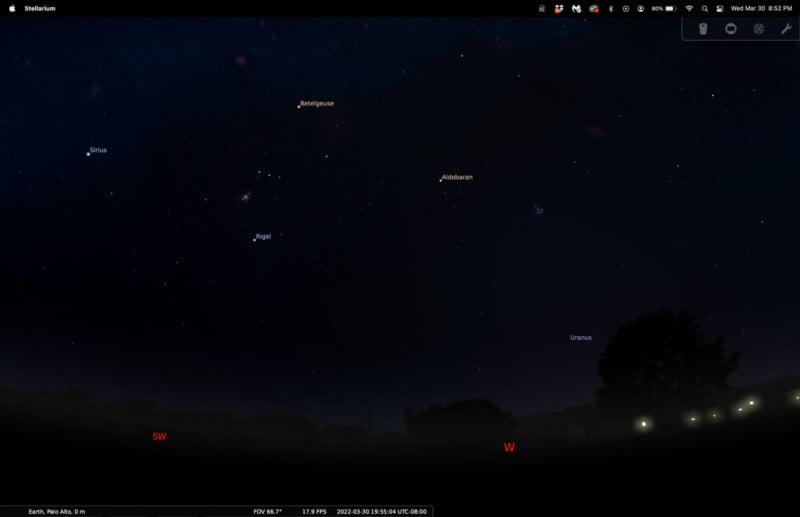 First, figure out what you want to shoot. Is it the Milky Way? Or maybe star trails? Or how about a shot of the Orion constellation? Use Stellarium to figure out what is calling you. You can plug in the dates and times as well to see when the target you want to shoot is visible.