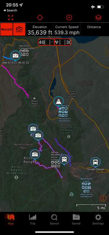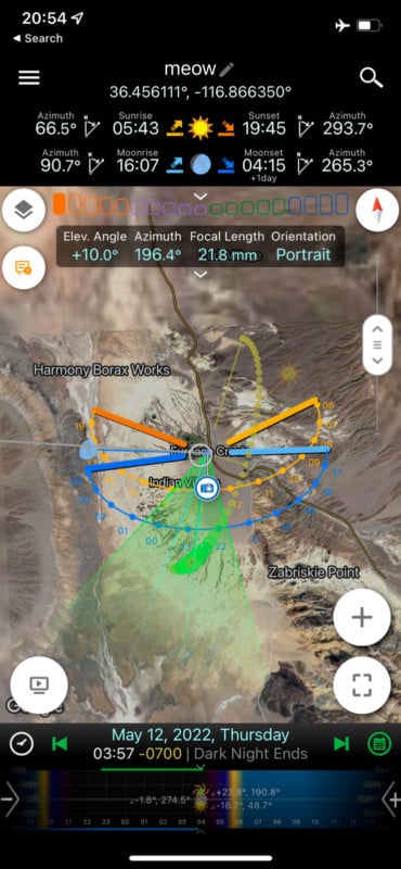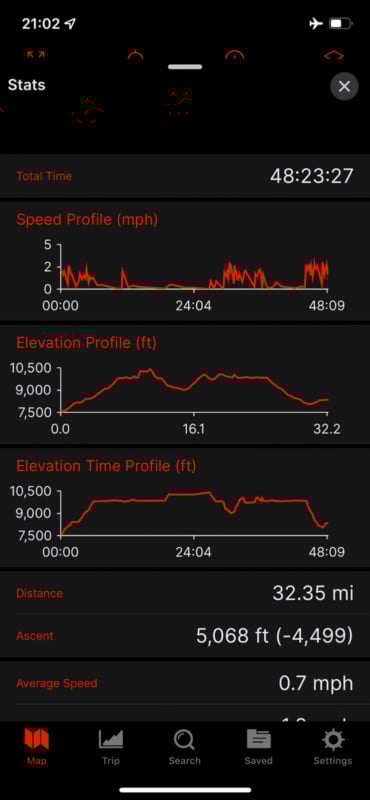 This brings me to my next point. Is the spot you want to shoot from a location that requires hiking and backpacking? Map that out in Gaia and see what the distance, gain, and terrain are. Then, you can plan your hike accordingly taking into account the additional weight of your camera gear. You can also figure out with Google Maps how long the drive will take to get to the trailhead, etc, but as mentioned previously you should never navigate a hiking trail with Google Maps. A dedicated hiking app like Gaia, a GPS unit such as the ones from Garmin, or a paper map and compass are far safer.