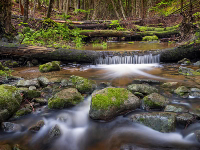There are also solid neutral density filters. These are dark filters that reduce the amount of light that reaches your image sensor. If you’ve seen photos of smooth waterfalls, the photographer likely used a neutral density filter. Sometimes the ambient light is dark enough that you can achieve a slow shutter speed without an ND filter, but often, an ND filter is required.