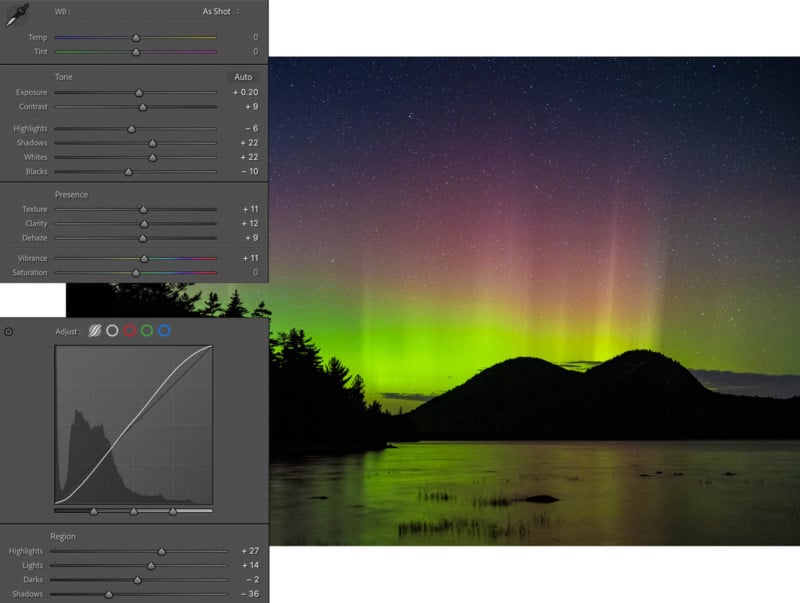 You can adjust your image using sliders, like exposure, brightness, contrast, shadows, highlights, blacks, and whites. You can also use curves adjustments. I prefer using curves, but sliders are more straightforward and often deliver good results. With each adjustment you make, check on your histogram and pay close attention to the image quality of the shadow and highlight regions of your image. As with any adjustments, a light touch is often best.