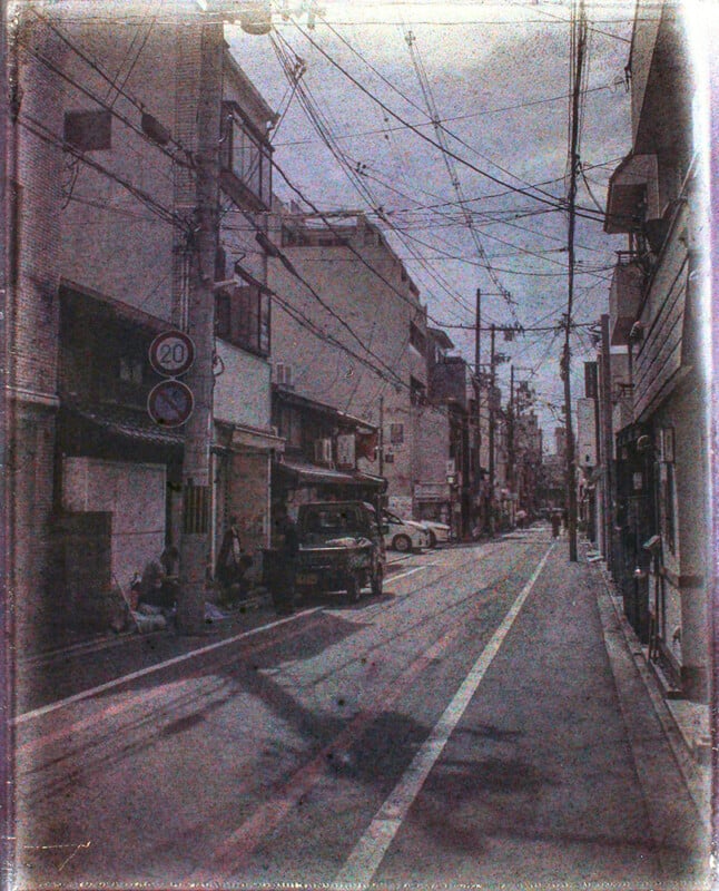 Hilty says he “went crazy” over a period of two months preparing 48 plates for his trip to Japan. He used finer grains by borrowing a method from the Lumière brothers — who patented the autochrome in 1903 — that involved separating the finer starch particles from the larger ones before dyeing them. He was able to get his exposure times down to “about one second” when shooting in bright sunlight